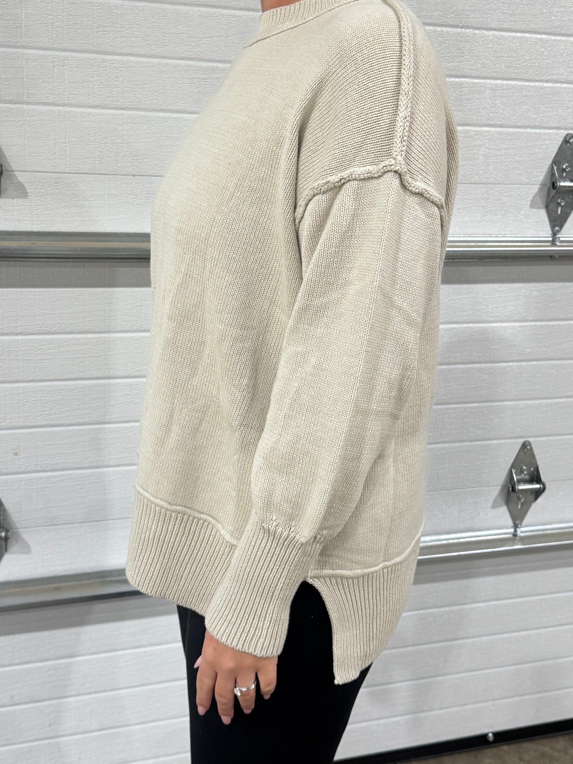 The Ina sweater effortlessly blends charm and versatility. She's designed as a adorable pullover style, boxy, slouchy silhouette, exposed seams, and side slits, it's a wardrobe essential. Transition effortlessly from gym sessions to fun girls' nights out, embodying casual chic comfort as the perfect go-to piece.